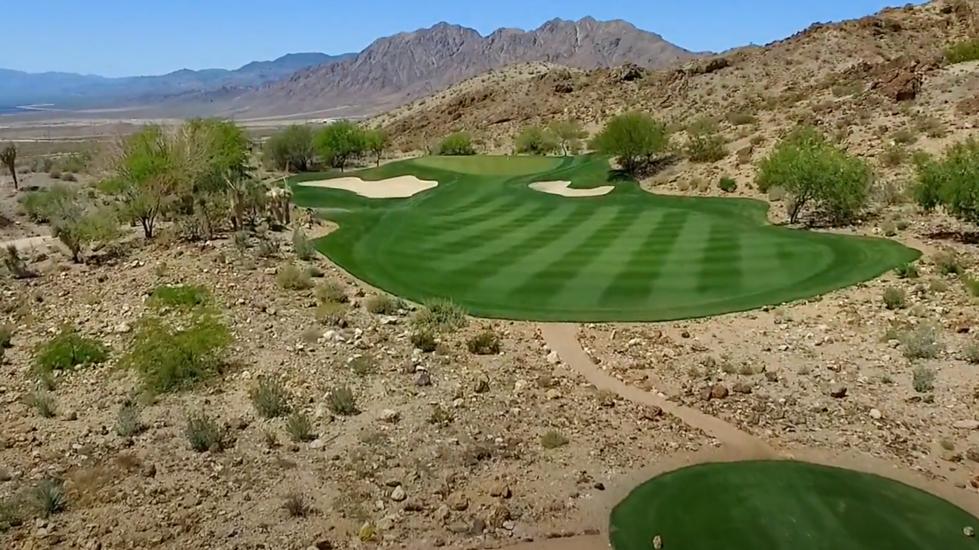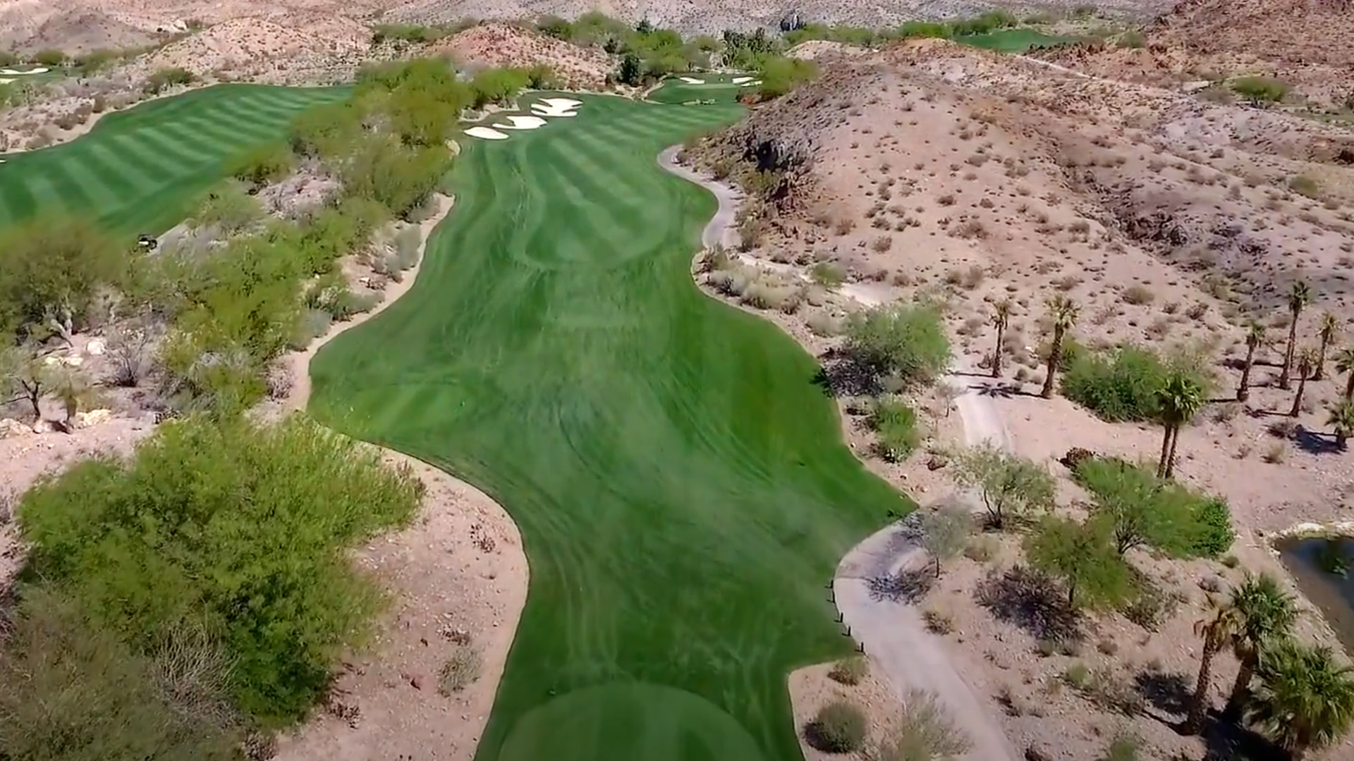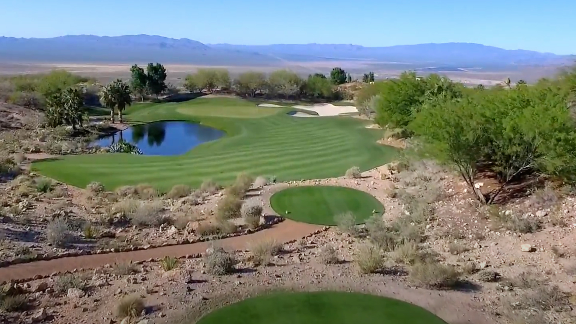 The number three par five is a stunner, and players may find themselves pulling their cameras out when standing on the teebox. The elevated tee provides a breathtaking view of the Vegas foothills and mountain range far off into the distance. You may attempt to reach these distant mountains with your drive, and long hitters will be rewarded with a chance to go for this green in two.