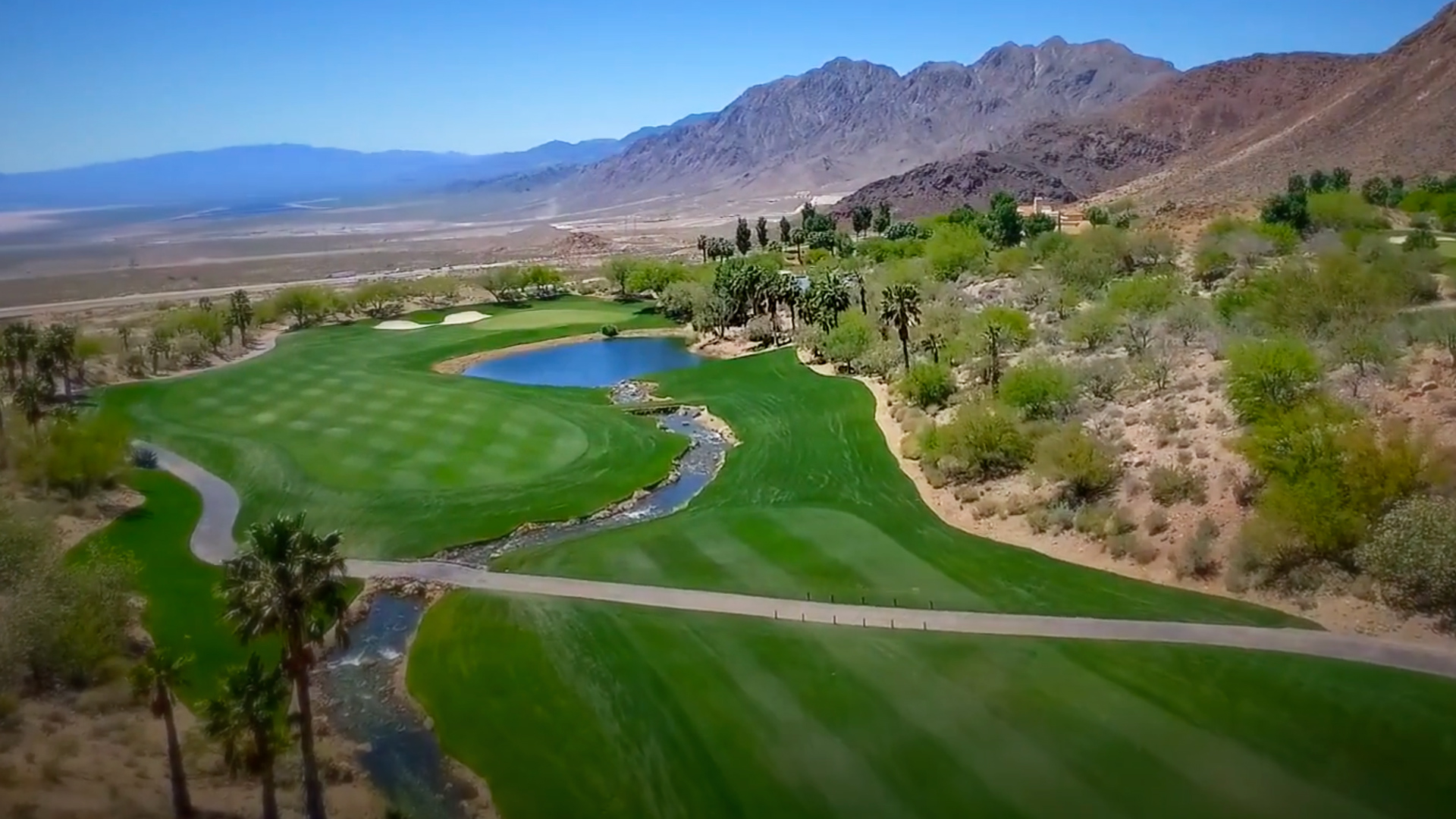 Another postcard worthy par three, number 15 features a backdrop of mountains towering over the green. Avoid the bunkers guarding either side of this green, and favor the right side as the left greenside bunker is a challenge, and you can play the hill on the right.