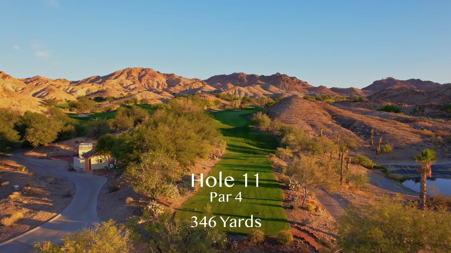 The tenth hole provides another awe inspiring straightaway view of the Vegas foothills and mountain range. Hit your tee shot left center and you will have an excellent look into the green, which is protected by some greenside bunkers in front and on the left side and get your back nine off to a strong start with this par four.